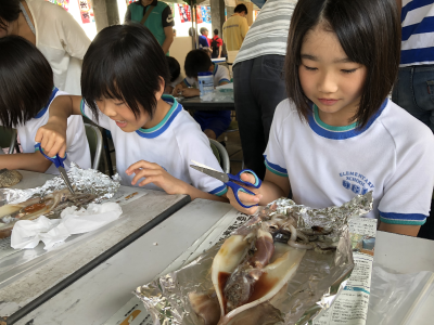 イカす会が開催されるにあたり,小木小学校の4,5,6年生も参加しました。