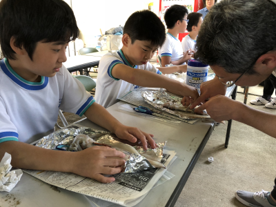 パレードが終わった後は,5年生はイカの解剖を,6年生は白山丸の乗船体験を行いました。