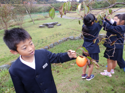 自分たちで柿をとりました!今ではなかなか経験できないことですね。