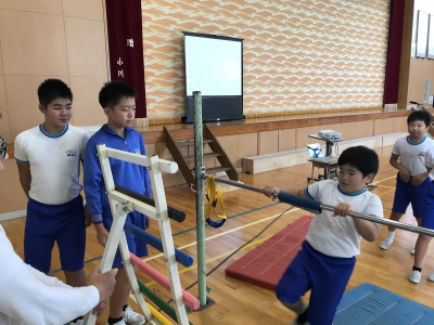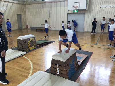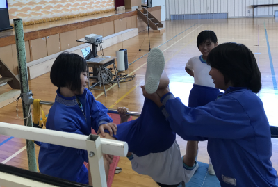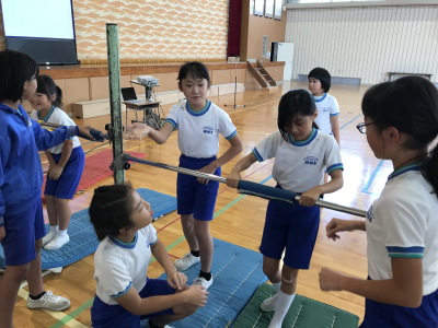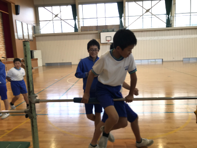 跳び箱と鉄棒,マット運動の3つがありますが,それぞれの運動で5・6年生がお手本を見せたり,4年生の補助をしたりと積極的に活動できました。