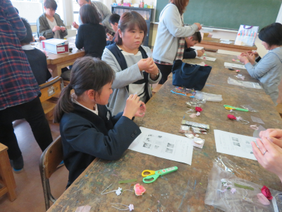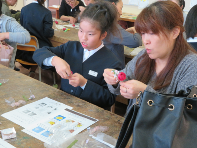 細かな作業が多く,子どもたちだけでなくお父さん・お母さん方も苦戦していましたが,お互いにやり方を話し合いながら進めていきました。