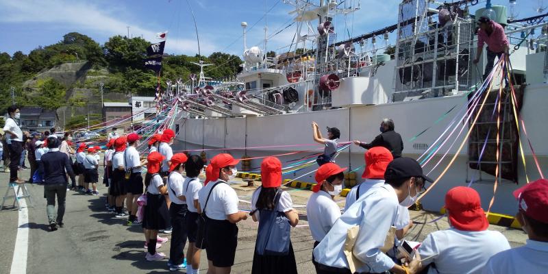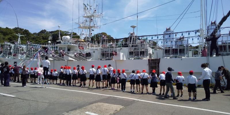 5・6年生は「午後からの船も見送りをしたい。」と昼休みの時間を利用していってきました。里海科の成果でしょうか、地域のことを思う子ども達です。