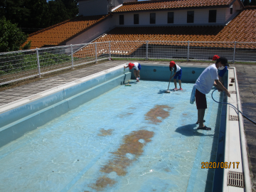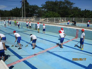 「知っている」と「できる」では大きな差があります。プール指導を行う前に改めて職員で確認をしました。