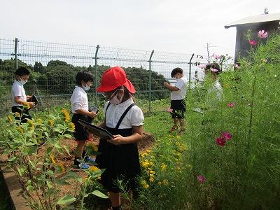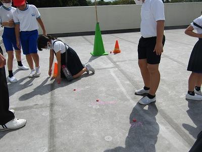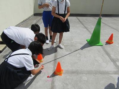 3年生の理科です。「かげ」を30分ごとに記録します。