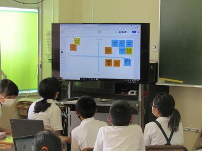 「議題「」、「めあて」、「柱1」、「柱2」、などの共通のプレートを準備して学校全体でそろえています。