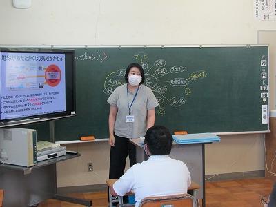 1年生では急遽、計画を入れ替えて地震の対策について学びました。
