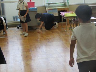 その後で新しい場所へ行き、掃除の仕方を高学年が教えます。