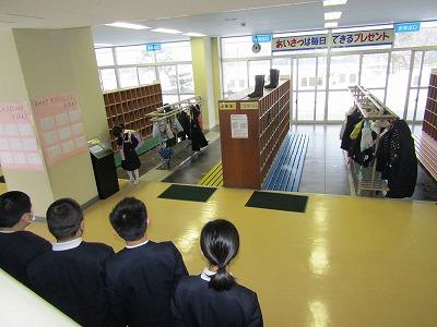 集会委員会が寒い中、挨拶運動をしてくれています。
