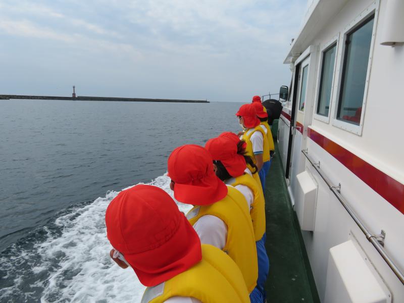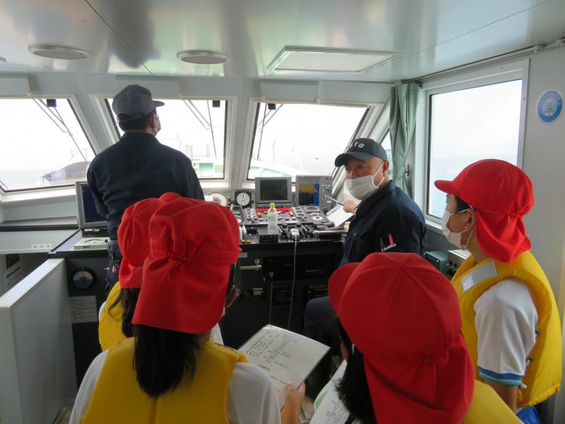 体験乗船では、定置網を実際に見て説明を聞いたり、海図や魚群探知機、レーダーの見方を分かりやすく教えていただきました。船の仕組みなどについて学びを深めることができました。