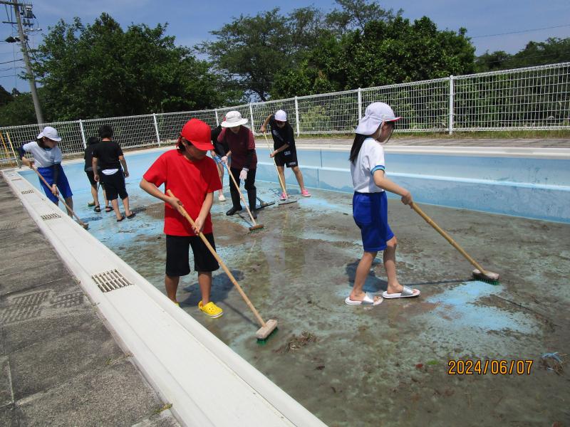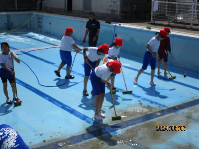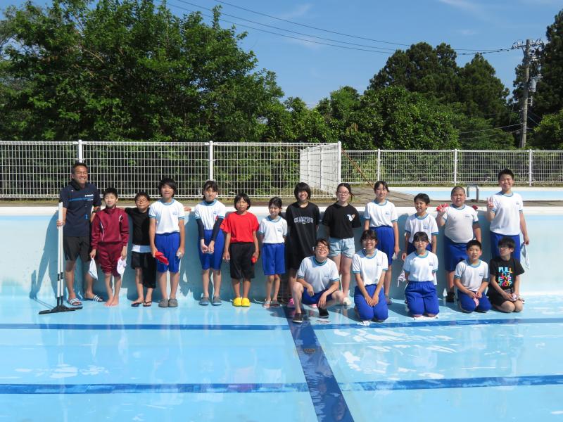5・6年生がプール掃除を行いました。汚れていたプールがきれいになりました。おかげさまで、水泳学習が始められます。5・6年生、本当にありがとうございました!