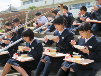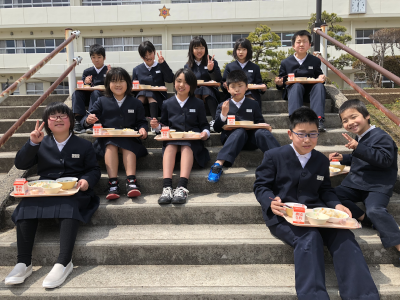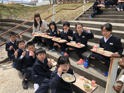 4月12日(金)に各クラスでお花見給食を行いました。一年のうちで今の時期しか見ることのできない桜を見ながら食べる給食は格別で,どの児童も春の訪れを感じながらお花見を楽しんでいました。