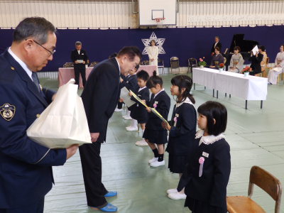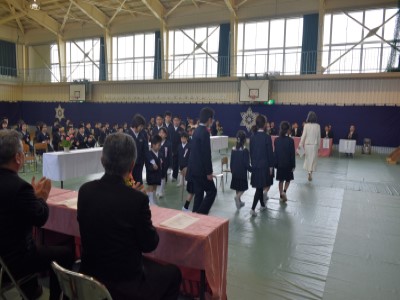 今年度は,9名の新入生が本校に入学し,保護者の方々や在校生,教職員に暖かく見守られながら式が進行しました。呼名の際には,一人一人が明るく元気な声で「はい!」と返事をし,学校生活に期待をもっている様子が伝わってきました。