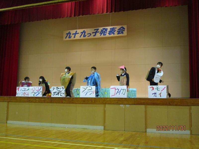 海の生き物について発表しました。1年生がそれぞれの生き物になりきり劇をしました。生き物の特徴がよく伝わりました。