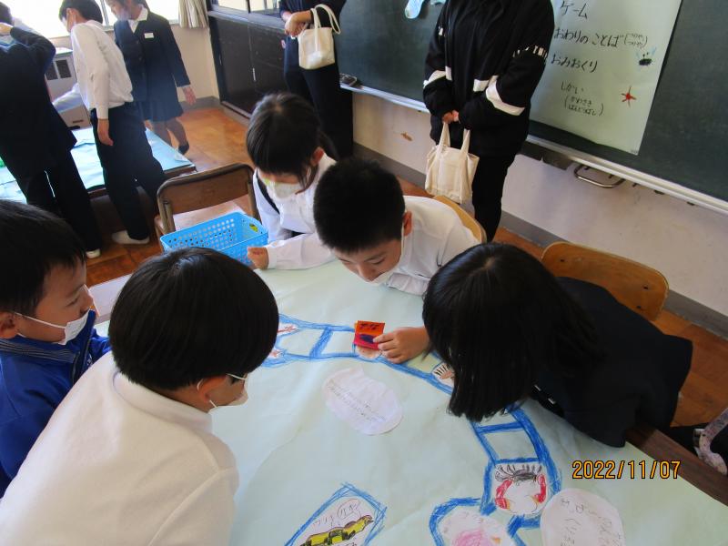 先生方に協力してもらい、沢山のカードを集めて「いつ・どこで・だれが・何をした」ゲームをしました。