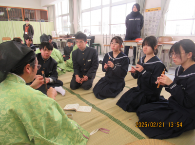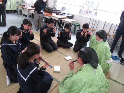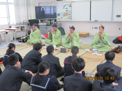 2月21日(金)1・2年生が雅楽の体験をしました。
