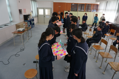 3月13日(木)卒業式前日に、1・2年生が企画運営した「卒業生を送る会」が開かれました。動画や色紙のプレゼントなどがありました。1・2年生の心のこもった会となりました。