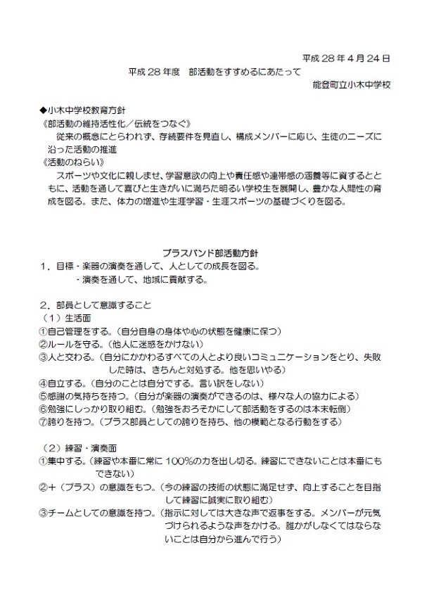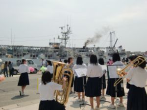部活動ニュース ・2012.11.4に文化祭で演奏をしました。 ・ミニコンサート 5月27日(金) 昼休みの音楽室にてミニコンサートを行いました。 ・ 6月12日(日) 能登町役場4階にてプロムナードコンサートが開催されます。 小木中ブラスバンド部も参加します。 皆さん、ぜひ見に来て下さい。 ・ イカ釣り船を見送り 6月8日(水) 小木港で、大漁を願って、吹奏楽の演奏と踊りを披露しました。 ・ 6月12日(日) プロムナードコンサートに参加しました。(能登町役場4階にて) ・ 11月12日(土)小木中学校文化祭が行われブラスバンド部も演奏をしました。 ・クリスマスコンサート 12月18日(日)能登町役場4階にて行われ、小木中ブラスバンド部も参加しました。 |