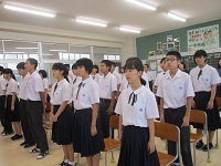 校長先生からは「権利と義務」について「生徒のみなさんには,選ぶ権利がありますが,選んだ役員のみんなを支える義務があります。また,役員のみなさんには立候補する権利がありますが,選ばれたからには決意表明したことを果たす義務があります。お互いに義務を果たして,この学校をよりよくしていきましょう。」というお話がありました。