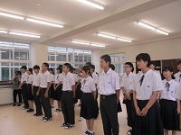 久しぶりの校歌。しっかりと歌い 夏休み,5つの点について意識して