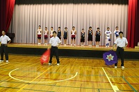 最初に恒例となっている防災体操をします。体育祭でも披露したのですが,今回は場所交代も加え,さらにバージョン・アップしたものとなっています。地域のみなさんもぜひご参加ください。