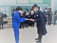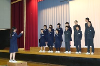 代表の生徒による「生徒数は少ないですが,学年の枠を超えて仲が良く温かい学校です。先生方の力もお借りし、一人ひとりが輝ける学校を創っていきたいと思います。」というあいさつがありました。