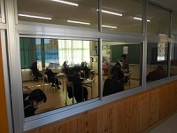 また、ACタイムでは全校生徒が間隔を十分にとった中でテスト勉強に取り組んでいます。生徒からは「集中して勉強することができる」「わからないところをすぐ先生に聞くことができる」と,とても好評です。