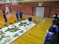 3年生がリーダーとなり,1・2年生全員に「旗振り」「手振り」「太鼓」を伝授しています。どの生徒も真剣に取り組んだことから,2回目の練習で完璧に近い仕上がりとなりました。