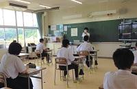 8月28日の昼休みに校長先生のお話がありました。文部科学大臣のメッセージを生徒会副会長が読み、全校生徒で確認しました。