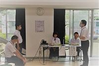 7月22日にソーシャルディスタンスをしっかりととって全校集会を開きました。