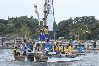 5月2日(土)、柳田中学校とすすめている里山里海交流のひとつである、とも旗祭り乗船活動が、下浜A,下浜B,そして高浜地区のみなさんのご協力のもと行われました。この活動のために、生徒は2月後半から柳田中学校のみなさんと一緒に“とも旗”を準備しました。天候の大きな崩れも予想されていましたが、当日は何とか乗船することできました。この活動を皮切りに、今後、いくつかの交流活動が予定されています。これらの活動の中で小木地区・柳田地区のよさをさらに探っていきたいと思います。なお、この旗は、平成30年度の卒業式にも体育館に飾る予定です。