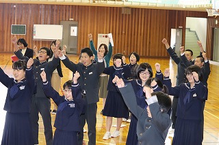 ゴールデンウィークに入る少し前から、生徒会執行部と有志による応援練習に取り組んでいます。5月23日(水)には、二市一郡中学校陸上競技大会、27日(日)の石川県中学校相撲大会松波大会があります。その壮行式と全校応援に向け「九十九湾頭」、「白湾健児」「駒を進むる」の小木中独自の応援歌や三三七拍子などを昼休みを使って練習しています。小木中学校がひとつになって取り組む活動がいよいよ始まりました。