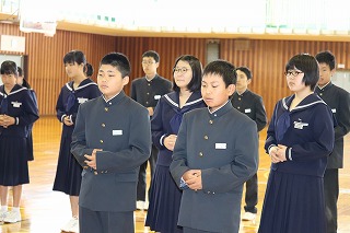 23日(水)は二市一郡陸上競技大会と県中学校相撲大会松波大会の壮行式を行いました。今まで部活に取組んできた成果を発揮できるよう生徒全員で思いを強くした時間でした。