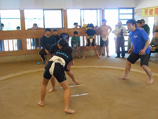 27日(日)、快晴の天候に恵まれる中、県中学校相撲大会松波大会が行われました。小木中学校からは選手として女子1名、西方の応援部隊として全校生徒が参加しました。女子は出場選手全員が総当たりで競うリーグ戦で行われました。上位入賞には今一歩でしたが、小木中全体の応援を受け、最後まで粘り強い戦いを見せてくれました。また、松波中との応援合戦では、生徒一人一人が大きな声をだし、石川県各地から集まってきた選手に勇気を与える熱い思いを伝えることができました。