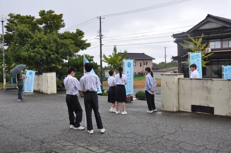 本日の街頭指導で、1週間おこなってきた小木中学校のグッドマナーキャンペーンが終了しました。朝のお忙しい時間帯に、ご協力いただきまして、本当にありがとうございました。