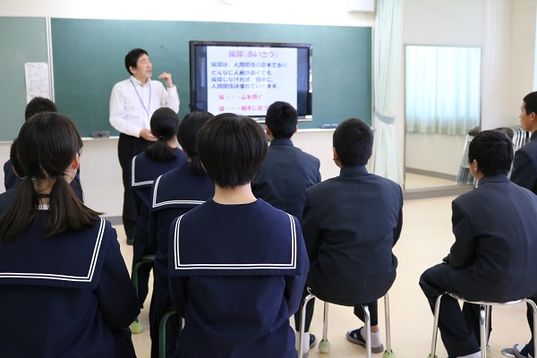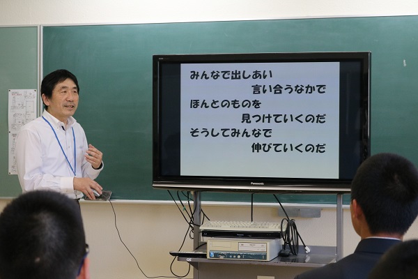 今日、全校集会がありました。校長先生から生徒の皆さんへ「教室は,間違えても良い場所です。周りにとらわれずに自分の意見がどんどん言えるようになってほしいです。明日から,勇気をもって一歩でも半歩でも前進しましょう。」というメッセージが伝えられました。生徒会長の板谷さんが詩を朗読する場面もあり,とても和やかな集会となりました。