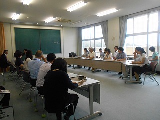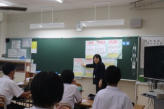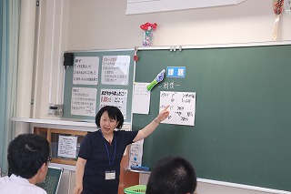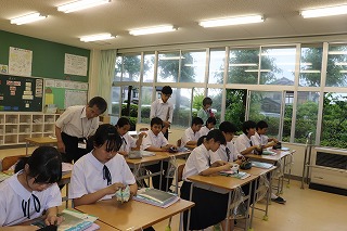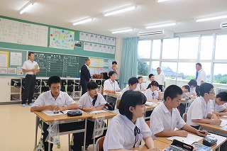 6月25日から1週間、学校公開を行いましたが、その最終日の5時間目には保護者だけでなく小学校の先生方や近隣の高校と子ども園の先生方もお招きし、授業参観を行いました。また、そのあとは、参加していただいた子ども園・小・高校の先生方と中学校の職員で情報交換や、小木地区の子どもたちのために共通して取り組めることはないかを話し合いました。