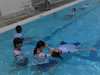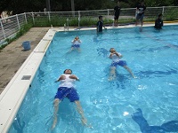 小木中にはプールがなく、久しぶりにプールに入った生徒たち。最初は緊張して上手に浮くことができませんでしたが、だんだんと上手に浮くことができるようになりました。