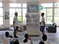 次に,2年生の山本さんと高さんから,修学旅行の「東京大空襲・戦災センター」で学んだことの発表がありました。「戦争から74年が経ち,被災された語り部の方々も高齢化している中,話を聞いた私たちが次世代に伝えていかなければならないと強く感じた」という感想がありました。