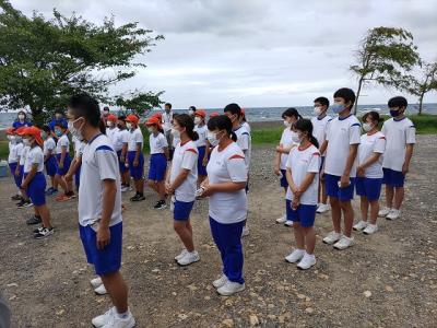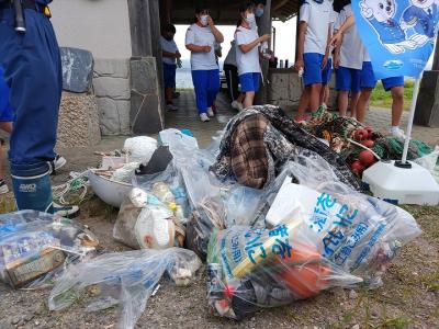 9月8日(木)、能登海洋教育研究所さんのコーディネートで海上保安署のみなさんと小木小の5・6年生と小木中の3年生が合同で、赤崎海岸の清掃活動を行いました。約40分という短い活動時間でしたが,たくさんゴミを集めることができました。3年生は、来週も、環境学習会も行う予定です。