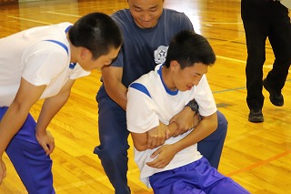 5日(木)は消防署内浦分署の職員の方々をお招きし、身の周りのものを利用して応急処置をする方法やけが人の運搬方法について学習しました。能登町にには救急車が4台しかなく、大災害が起こった場合、救急車がくるまでに4時間ほどかかる場合もあり、軽いけがは自分たちで処置できるようにしておく必要もあります。また、動けない人を安全な場所に移動させる場面も考えられます。自分たちでできることはできるようにしておきたいと改めて感じました。