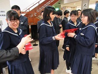 17日(木)の午後,1年生と3年生はのときんぷらで開催されている「おでかけ美術館」に行きました。輪島漆芸美術館の出張美術館で,作品鑑賞と輪島塗の行程を学習しました。また,ストラップ作りも体験し,とても楽しい時間を過ごしました。生徒たちは細かい沈金の技法や螺鈿の作品に「すごい!」「きれい!」などと感動していました。また,ストラップでは,思い思いの図柄で作品を作っていました。