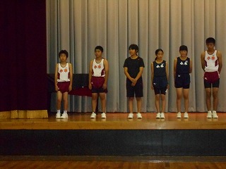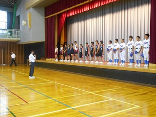 13日(木)、鳳珠郡中学校体育大会新人大会(バスケットボール・野球)並びに能登地区陸上競技大会新人大会の壮行式を行いました。野球部は小木中だけではチームを組めず穴水中学校との合同チームで出場、女子バスケットはメンバー5人というぎりぎりの戦い、陸上部にしても少数精鋭ということになりますが、どんな理由があろうと言い訳せず、粘り強く戦ってくれるものと信じています。