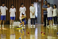 今年度のファミリー学級は,全校でペタンクを楽しみました。親子2ペアで1チームを作り,目標球に近づけるようにボールを投げて得点を競いました。ペタンクはフランスが発祥国でヨーロッパでは普及しているようですが,日本ではまだまだ馴染みの薄い競技です。最初は戸惑いながら競技をしていましたが,ルールやコツがわかってくると「あ~,惜しい!」「お~!いいとこや!」などの声が多くなり,親子でとても楽しい時間を過ごすことができました。