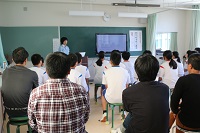 穴水町のICT支援員堀井さんを講師にお招きし,「ネットやゲームと私たちの未来」というテーマでお話を聞きました。