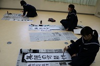 5・6限目には、書き初め大会が行われました。生徒たちは真剣に向き合い、冬休みの練習の成果を発揮していました。なかなか満足できる作品を仕上げることは難しかったようですが、どの作品も気持ちのこもった素晴らしいものでした。