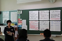 生徒の振り返りには、「相手を傷つけないように気をつけてコミュニケーションをとったり、いじりをしなくてもいいような雰囲気をつくることが大切だ。」「樹木希林さんの手紙を聴いて、人間がロボットのように同じようになってしまうと面白くないから人は違いがあって当たり前なのだから、いじったりいじめたりすることの必要のなさを感じました。」というものが多くありました。
