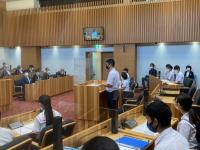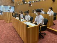 8月27日(金)に能登町子ども議会が行われました。小木中学校からは、3年生の2人が参加し、「地域の街灯、防犯カメラの設置について」と「能登町の5Gサービス導入について」質問や提案をしてきました。