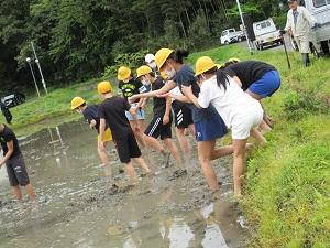 泥にも慣れたので、みんな裸足で元気よく入っていきました。