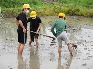 昼 5年生 米づくり「代かき体験」をしました