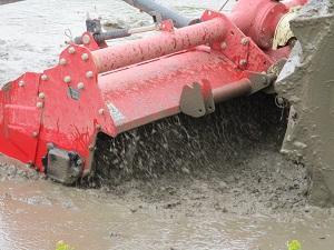 昔ながらの鍬を使って泥をかき混ぜたり、ならしたりをしましたが、とても大変でした。